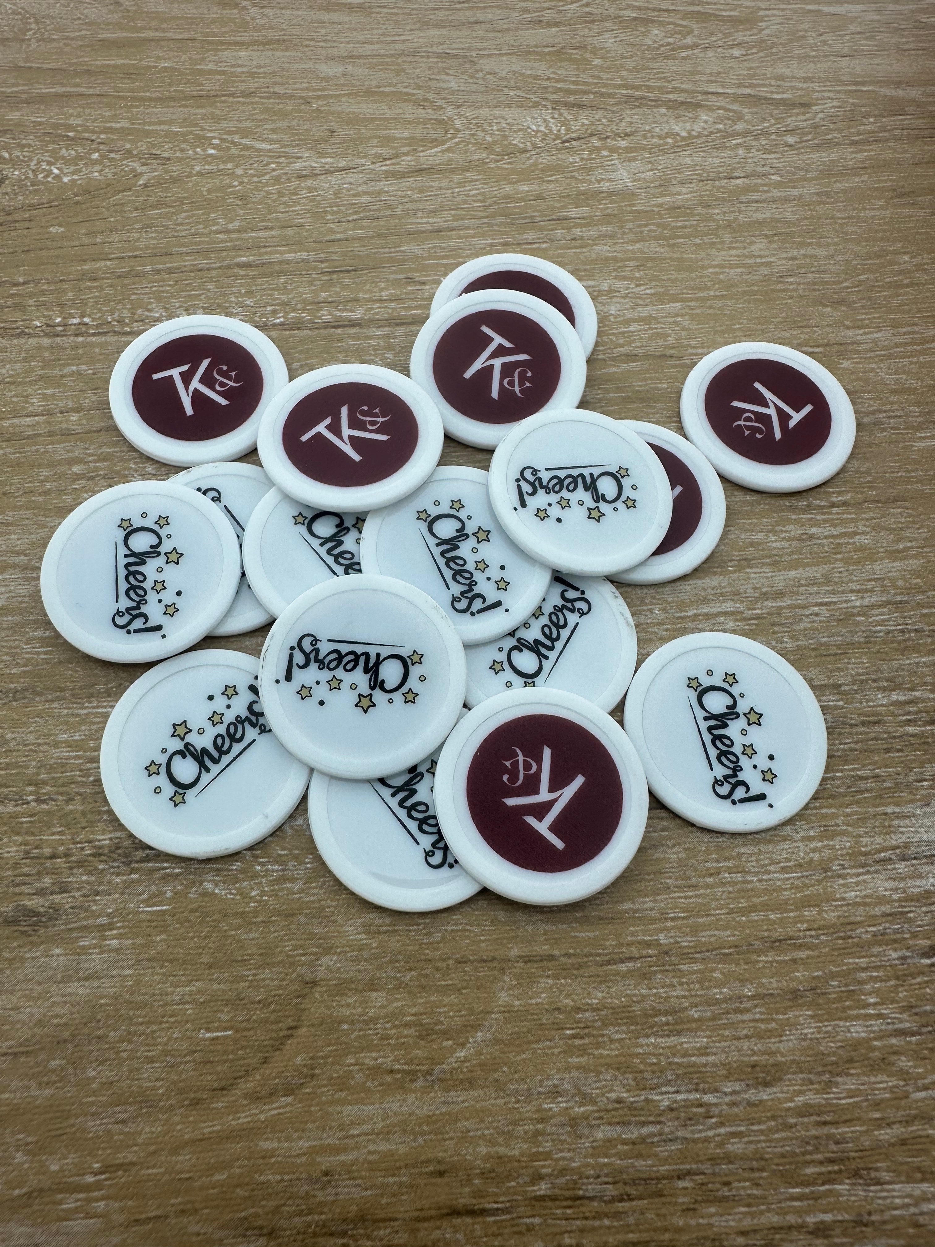 Las fichas de plástico tienen un diámetro de 28 mm y un grosor aproximado de 2 mm. Puedes personalizar estas ficahs redondas con tu propio diseño a todo color, por una o ambas caras. Si eliges la impresión por ambas caras, puedes elegir un diseño idéntico o diferente. Todas las fichas tienen un borde elevado para proteger la impresión. Las fichas se venden por 100 unidades y sólo están disponibles en color blanco.