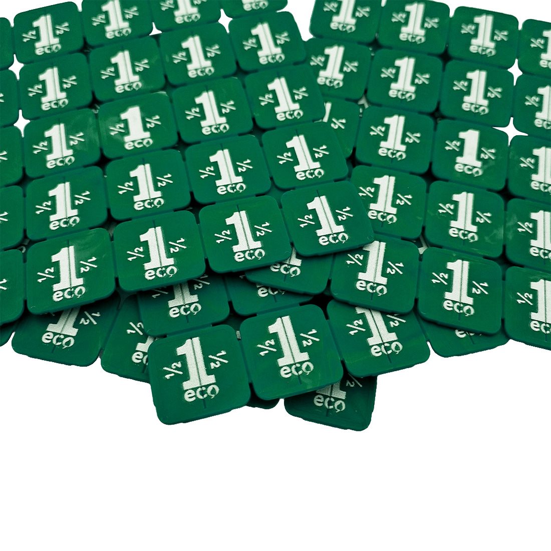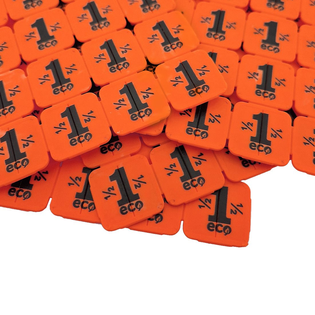 Fichas biodegradables hechas de almidón de patata. Cada ficha tiene el número 1 con 1/2 en cada lado, lo que significa que también se pueden usar como 50 centavos. Ideales para fiestas, festivales y más. Se venden en paquetes de 1000 fichas.
