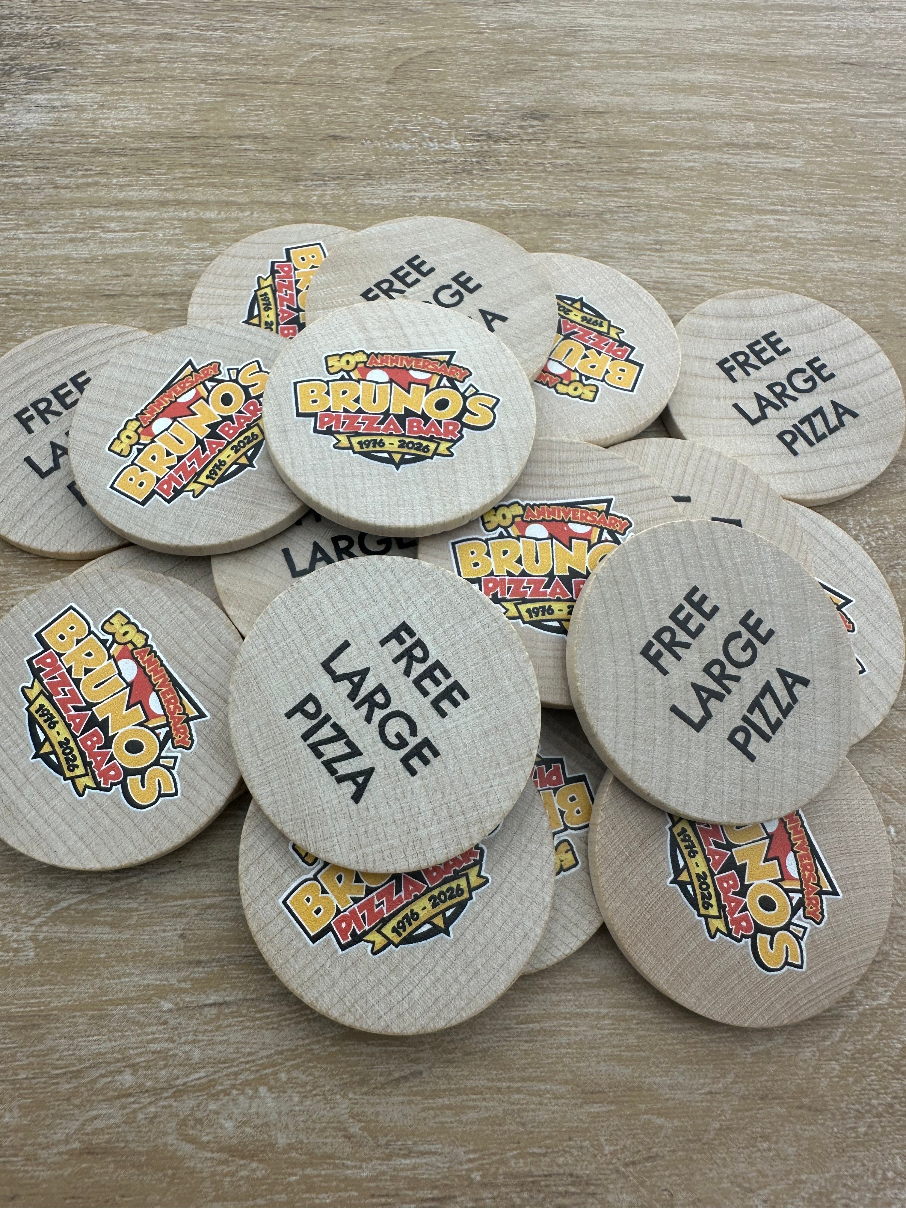 Las fichas de madera son increíblemente versátiles. Úsalas como fichas en festivales, como artículos promocionales en eventos o como fichas de juego durante actividades. Puedes personalizarlas con su propio diseño a todo color. Se venden en paquetes de 100 unidades.