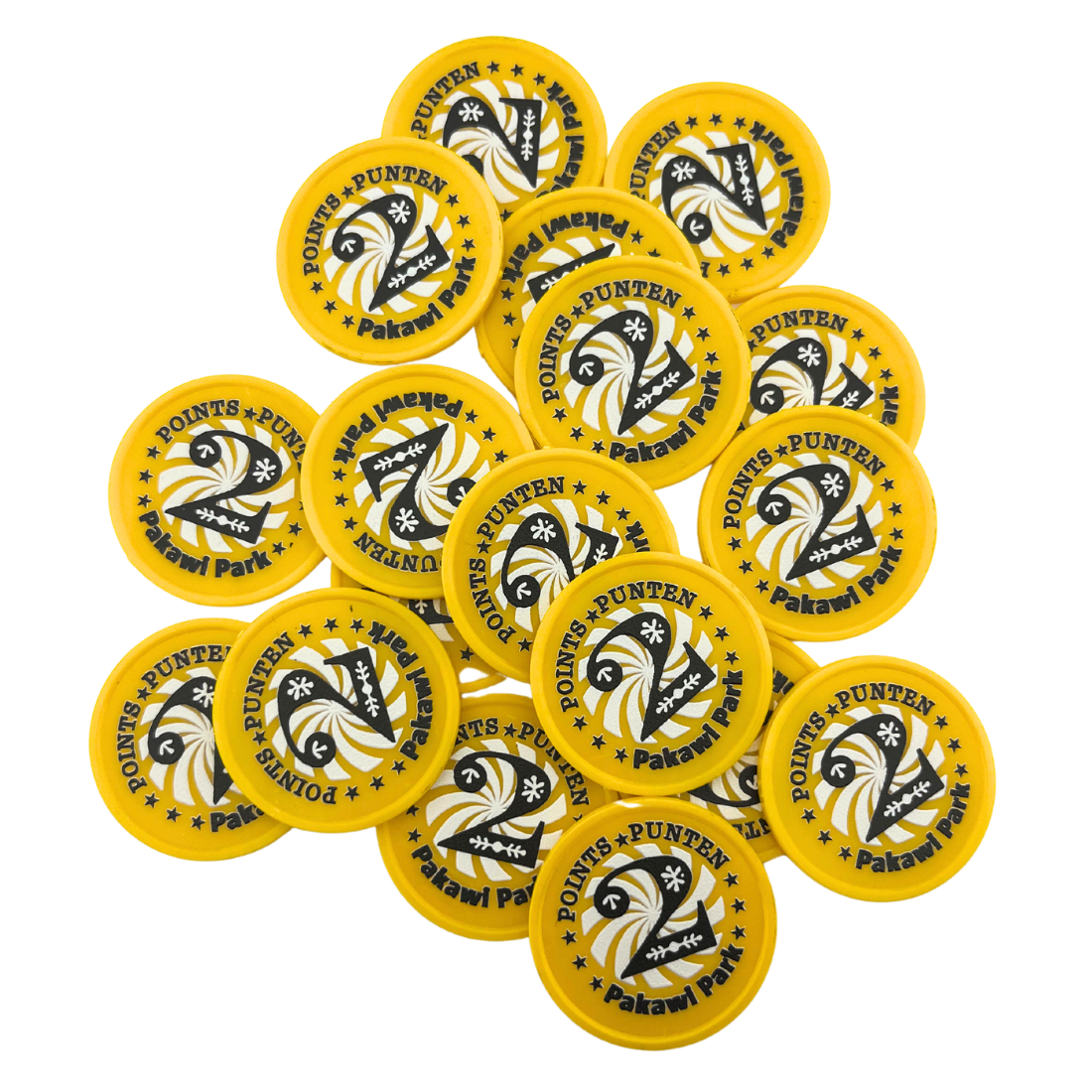 Las fichas de plástico tiene un diámetro de 35 mm. Es considerablemente mayor que la mayoría de las fichas, que suelen tener un diámetro de 29 mm. Tiene un grosor de 2,35 mm. Puedes personalizarla con su propio diseño a todo color en una o ambas caras, ya sean diferentes o idénticas. Todas las fichas tienen un borde elevado para proteger la impresión. Se venden en paquetes de 100 unidades y están disponibles en varios colores.