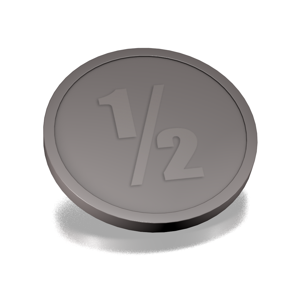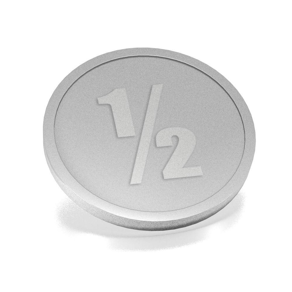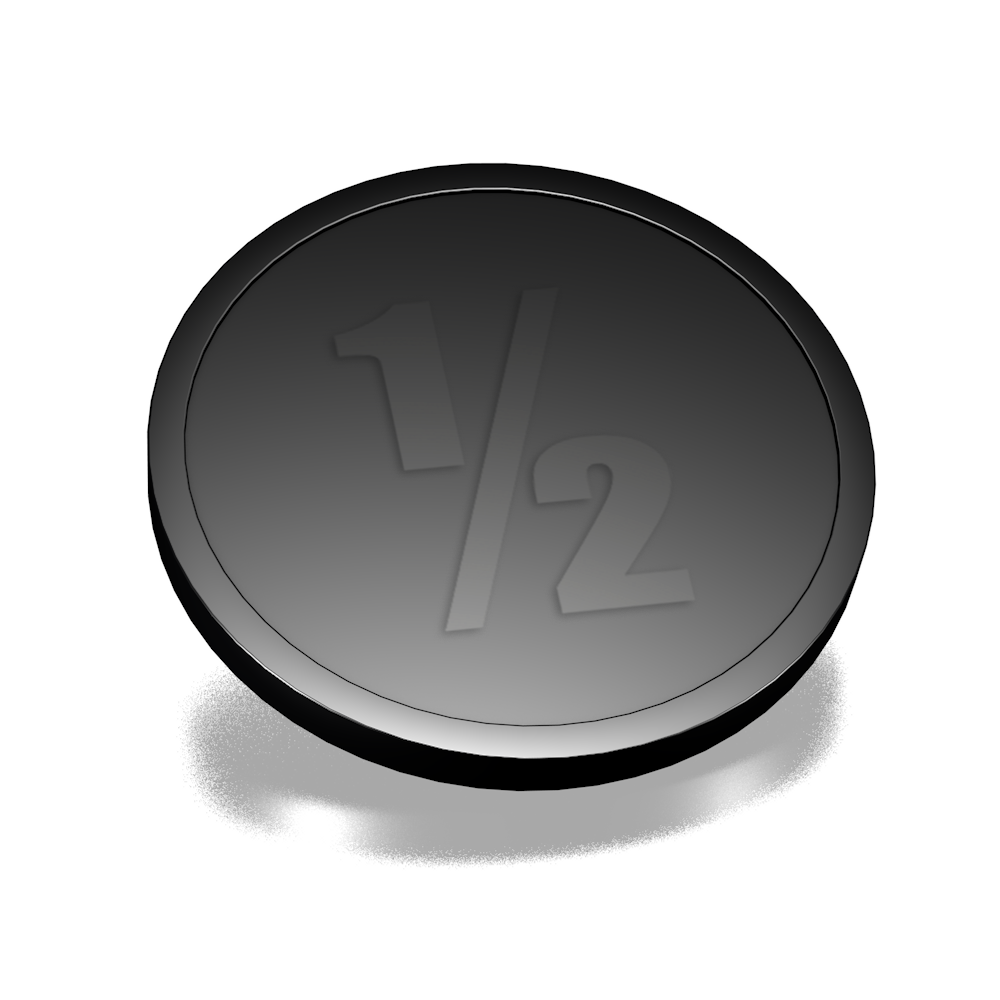 Fichas plastico con 1/2 en relieve y un diámetro de 29 mm. Presentan un borde elevado y un grosor de 2,35 mm. Ideales como fichas para consumo, bebidas o como medio de pago. Disponibles en varios colores. Paquete de 250 unidades.