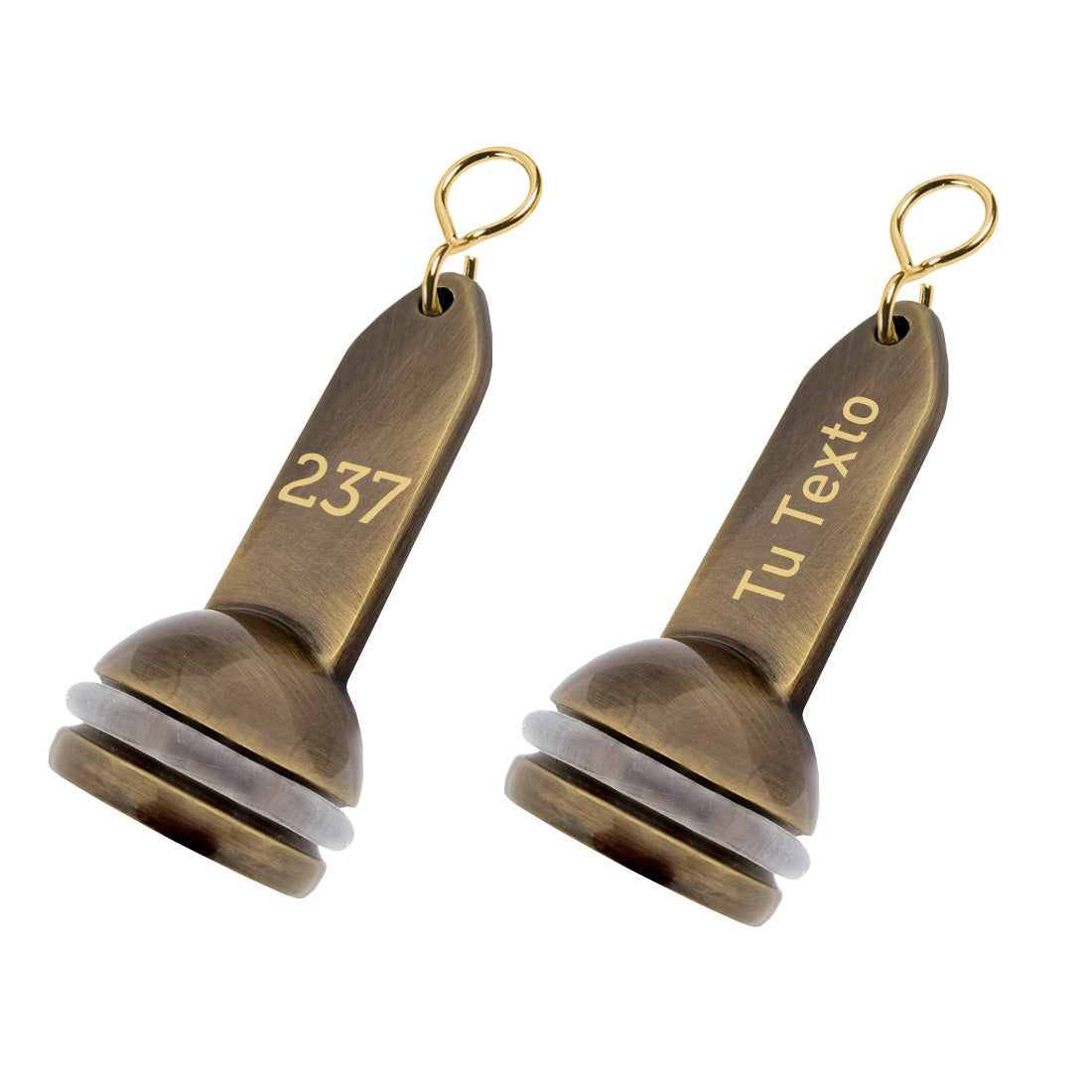 Es posible grabar en la parte frontal, posterior y en la parte inferior del llavero. La numeración, el texto o el logotipo se graban en color dorado mediante grabado láser, garantizando un resultado preciso y duradero.